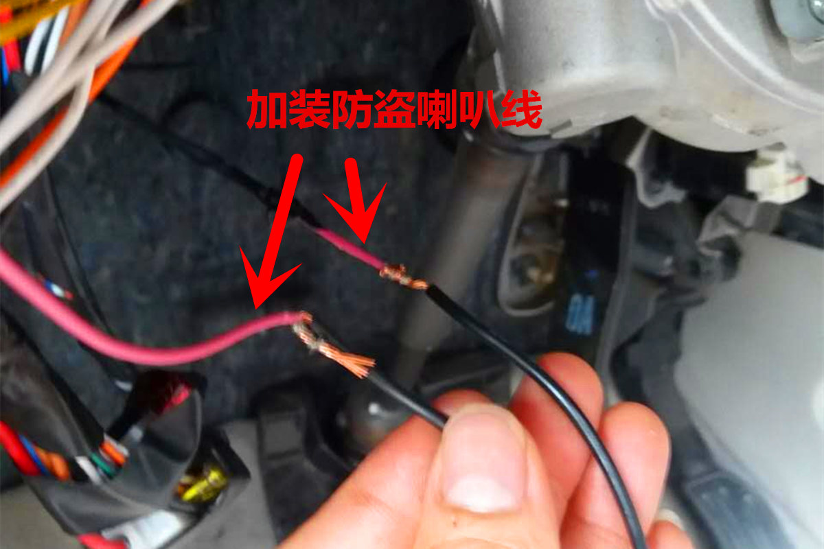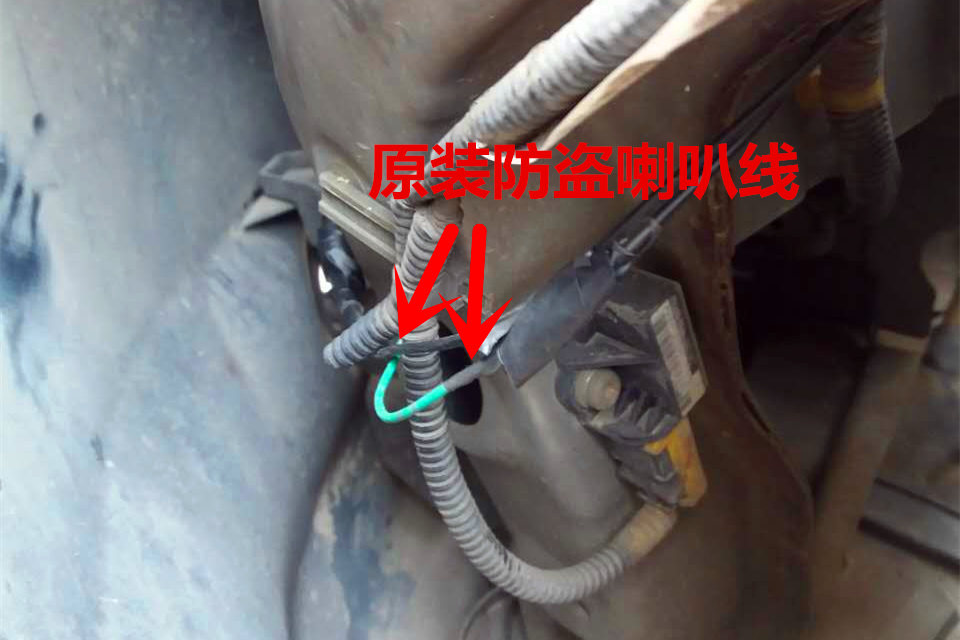 10、如车辆有加装或原装防盗喇叭,需将喇叭线剪断并串联连接